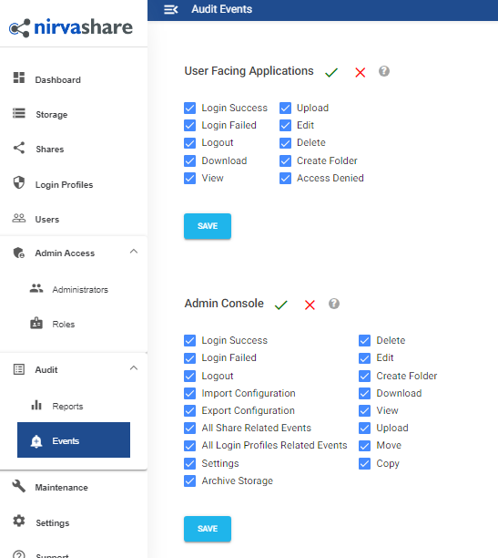 Please note that, system will generate one record in database for each audit event that is enabled. Hence enable only that which is required for your organization, otherwise lots of data may get generated over a period of time.