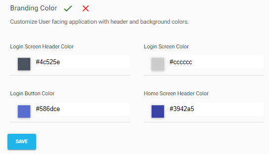 The user facing application can be customized to have the theme color that goes with your logo and branding. By default, it will be set to default color in the absence of custom brand color or when license is expired.