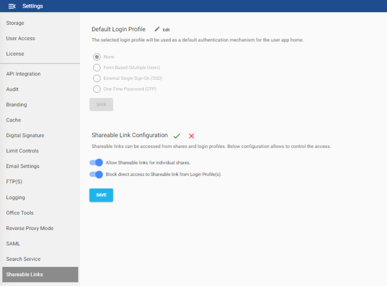 When disabled, shares will use the shareable link of Login Profile. Multiple shares assigned to the same login profile will use the same shareable link for all those shares.