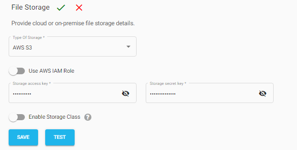 The newly created access and secret keys can be used for configuring NirvaShare to access S3 storage.