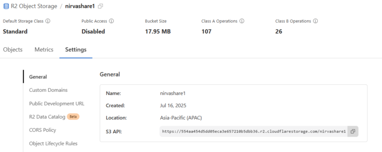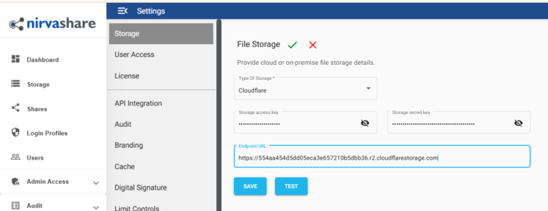 NirvaShare can be configured to share files from Cloudflare. In this document, we will see how to generate access and secret keys from Cloudflare to configure the NirvaShare file storage.