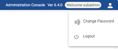 < All Topics Main Administrative Guide Users Change Admin User Password Change Admin User Password Admin user can change the password by clicking the Change Password menu on the top right corner. Provide a new password along with the current password to change to a new one.