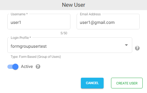 - Click on CREATE USER.