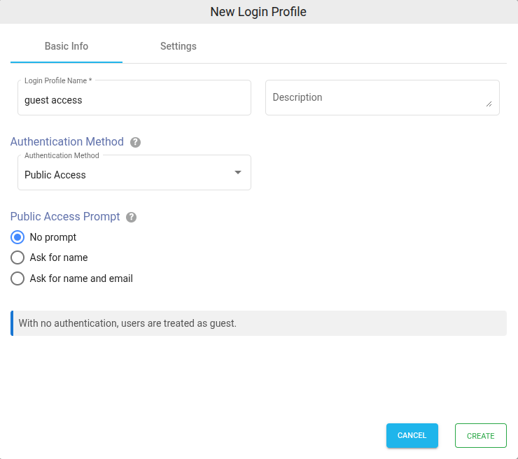 - Under the Basic Info tab, provide a name for the Login Profile Name and an optional description.
